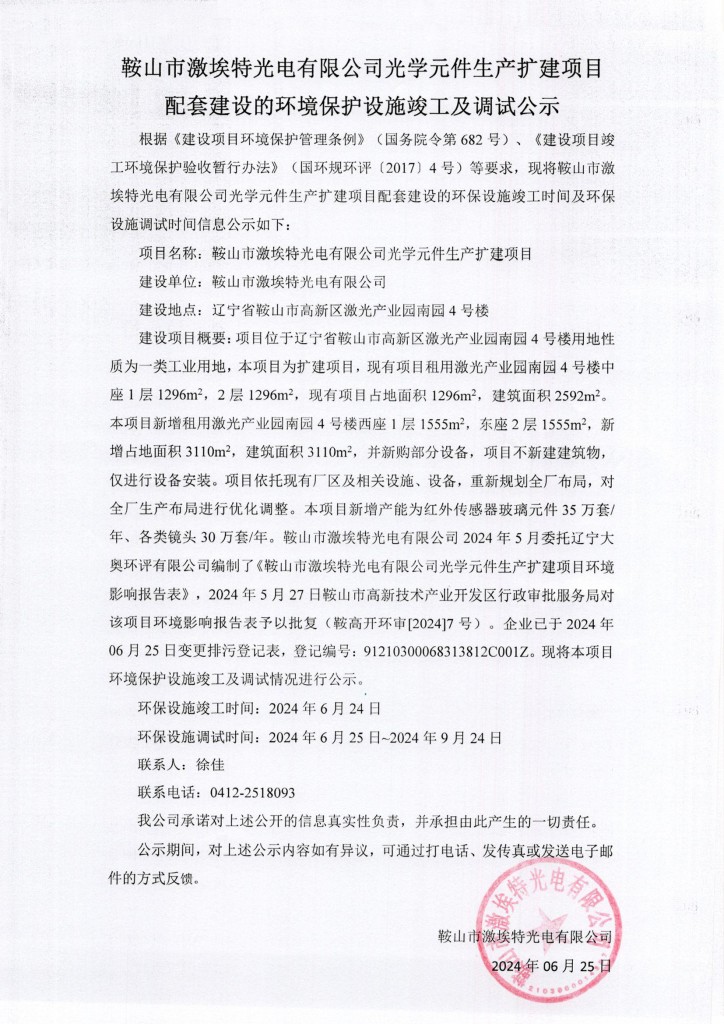 鞍山市激埃特光電有限公司生產(chǎn)工藝流程 三月 18, 2013// 企業(yè)文化// 鞍山市激埃特光電有限公司生產(chǎn)工藝流程! Related Posts 激埃特光電展訊丨2024CIOE中國(guó)光博會(huì)圓滿結(jié)束,期待在下屆與您相約! CIOE邀請(qǐng)函|第25屆中國(guó)國(guó)際光電博覽會(huì)·激埃特光電雙展位(7B31/1A73)恭候您的蒞臨! 關(guān)于"光學(xué)元件生產(chǎn)擴(kuò)建項(xiàng)目配套建設(shè)的環(huán)境保護(hù)設(shè)施竣工及調(diào)試公示"