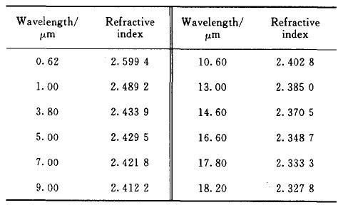 ? ? ? ? 表l ZnSe晶體折射率隨波長(zhǎng)的變化